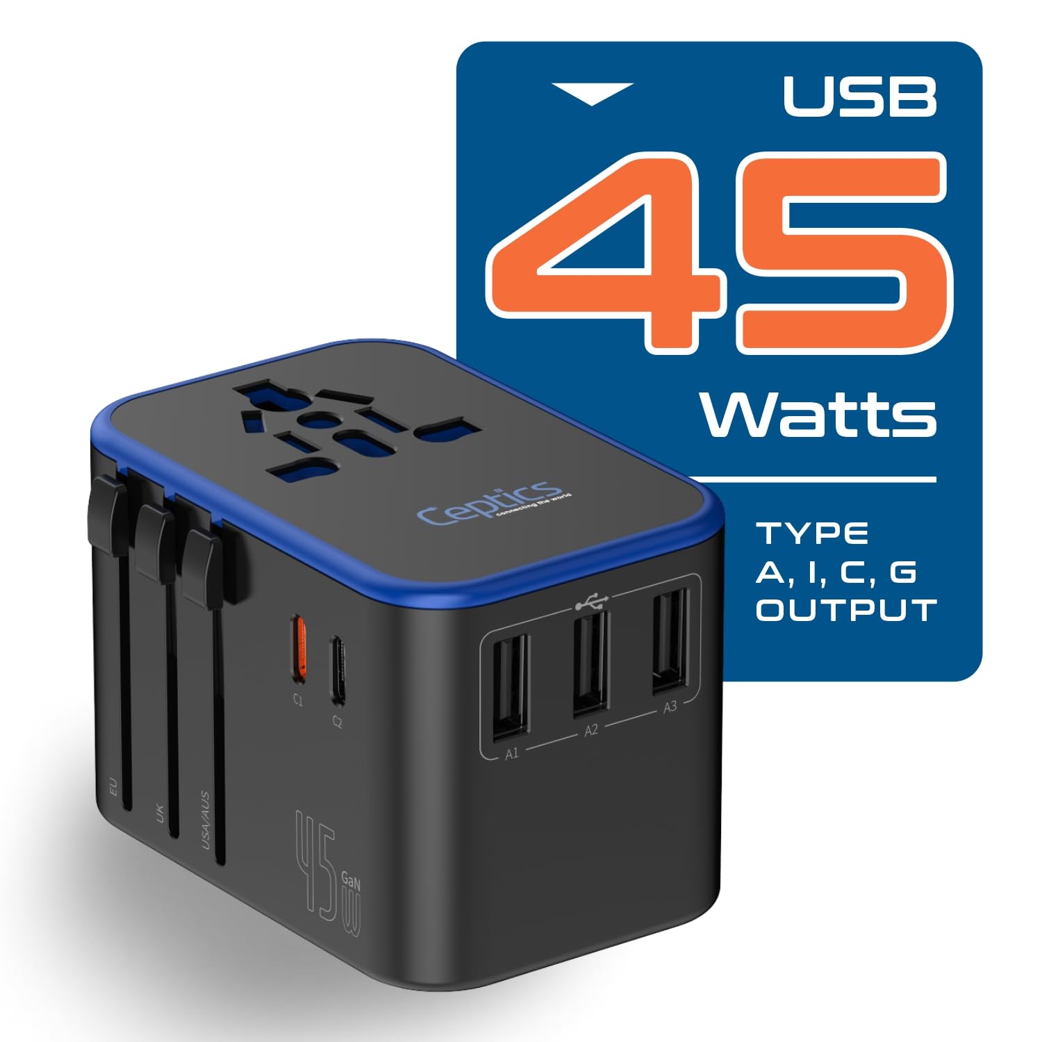 BuyUniversal Travel Adapter, 45W International Power Adapter with PD & QC 3.0 Dual USB-C, 3 USB Travel Adapter Worldwide, Type I C G A Outlets 110V 220V A/C - EU Euro US UK (11-KU)